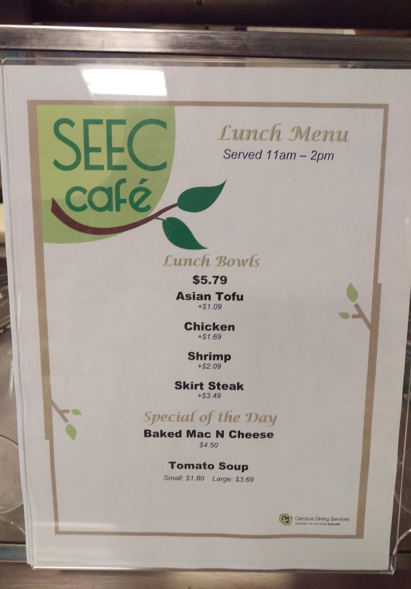 Welcome to SEEC Cafe, a gem located at the MacAllister Research Center in Boulder, CO. Renowned for its vibrant cafeteria atmosphere, SEEC Cafe offers an impressive menu that caters to both students and locals alike. With a focus on affordability, you can enjoy a nutritious bowl packed with protein and fresh veggies for just $5, making it an economical choice for satisfying meals.